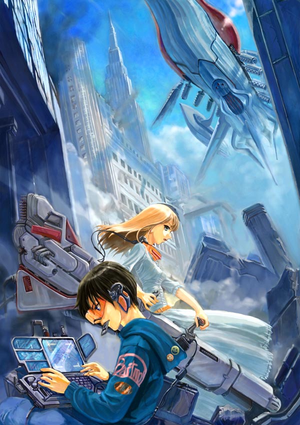 | というわけで久しぶりの更新ですが、今回からイラストにコメントを入れようかと、、、 これは今回の某電撃イラスト大賞に出したものです。 結果はまだなんですが募集要項にHPへ載せるのはOK ってことで載せちゃいました。一応応募用ということもあり、 それなりに気合入っています。 シチュエーション的には異星文明対少年少女反乱軍というような感じです。 こういうどう見ても軍隊じゃない人たちが戦うシーンというのは結構好きで 、ここらへんの根底は ぼくらの七日間戦争あたりなのかな?とか思ってしまいます。 (内容はさっぱり覚えてないけど、タイトル的イメージで、、、、 背景資料用に都内のロケハン行って来たりあれこれやった作品です。 PCとかもっとスマートなデザインにしたかったんですが、 このいけてなさっぷりは物資欠乏っぽくて逆にいいかな?と思わなくもない作品ですね。 |